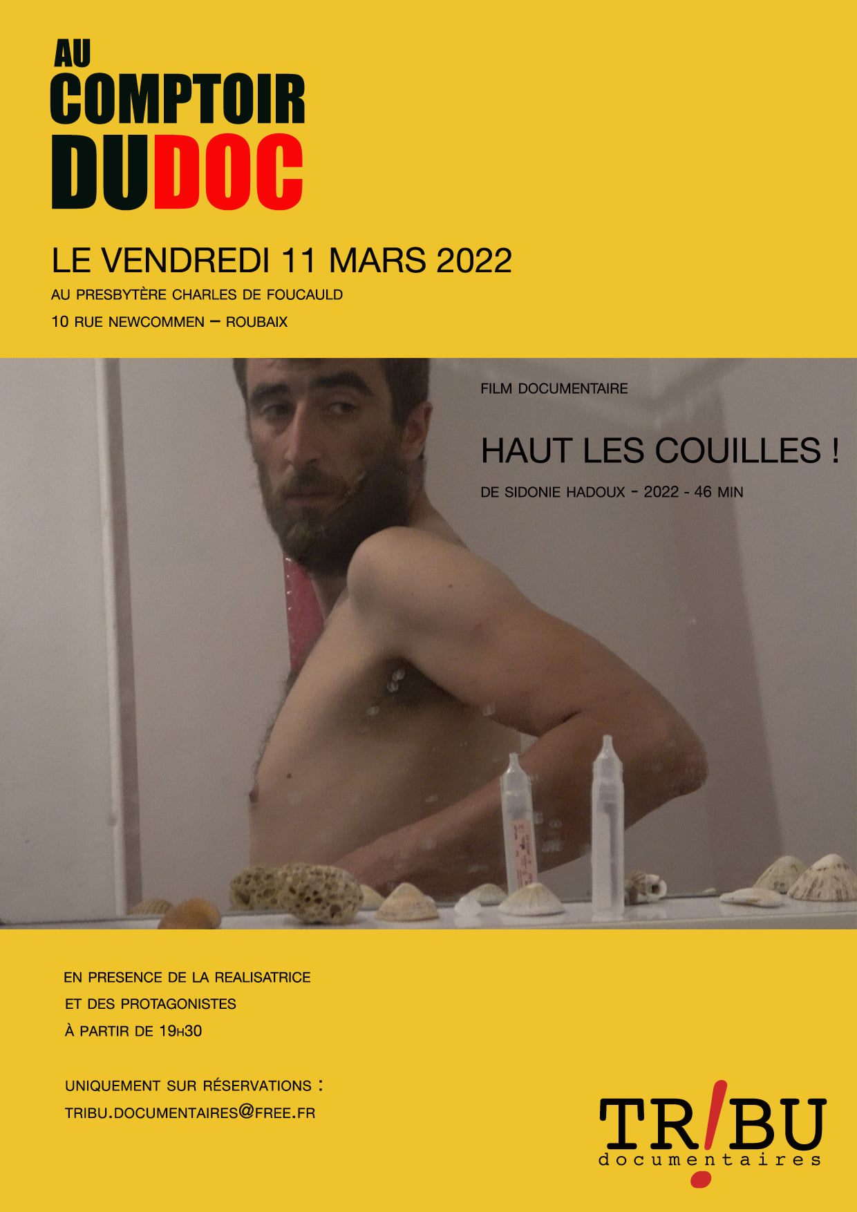 Hier, nous étions invité.e.s par Tribu Documentaires au presbytère Charles de Foucauld à Roubaix dans le cadre des Comptoirs du Doc afin de diffuser Hautlescouilles.