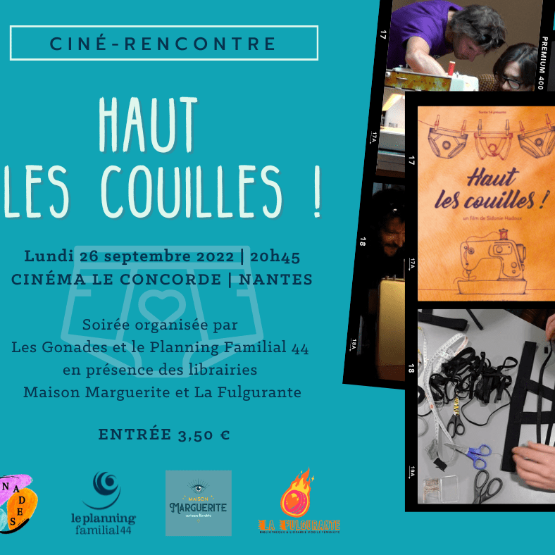 Haut les Couilles de Sidonie Hadoux est projeté à 20h45 au Cinéma Le Concorde (Nantes). Un évènement organisé avec le Planning Familial 44, et suivi d’une discussion animée par le collectif Les Gonades autour de la réappropriation des corps et des contraceptions testiculaires.